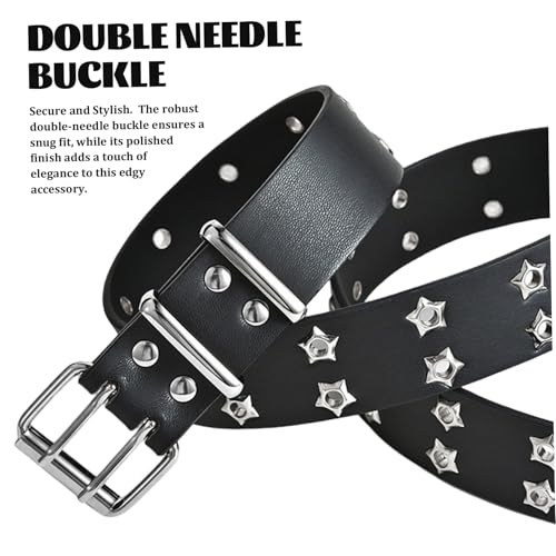 Y2k Belt Goth Belt Gothic Star Rivet Double Needle Buckle PU Leather Men's and Women's Jeans Fashion Thin Belts for Women ' Belts Fashion Accessories BlackY2k 3
