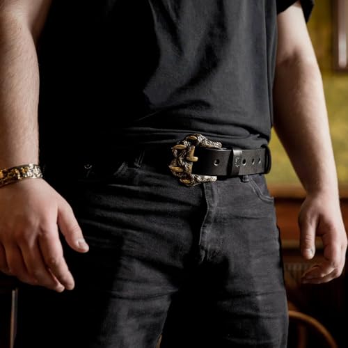 HOT ! Leather belt with solid German silver belt buckle Wolftrack, wolf paw with claws, large beast claws belt, handmade big pin buckle belt