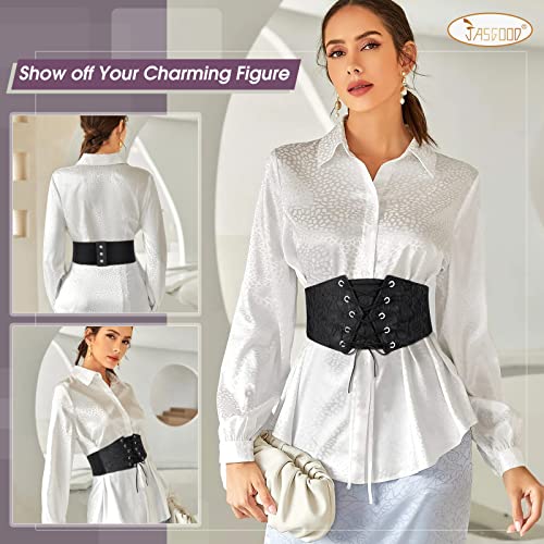 HOT ! JASGOOD Women Wide Corset Elastic Belt Waspie Lace-up Tied Waist Belt for Women Dress Halloween Costume