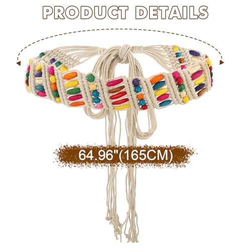 • Material: Our waist belt is made of wax rope and colored wooden beads,not easy to fade, suitable for daily wear.