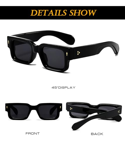 • HIGH QUALITY FRAME DESIGN► This fashionable rectangular sunglasses are made of high-quality acetate fiber and reinforced metal hinges, paired with a popular rivet design. The anti-slip design on the inner end of the mirror legs allows you to easily wear them all day long.