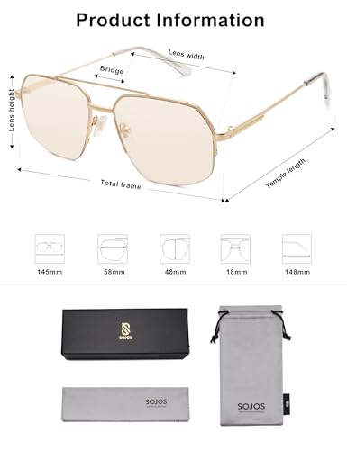 • HIGHLY RESISTANT - The SOJOS Aviator sunglasses are made up of high quality metal frame, UV400 Polycarbonate lenses and solid metal hinges, which makes for a more resistant experience and longtime usage.