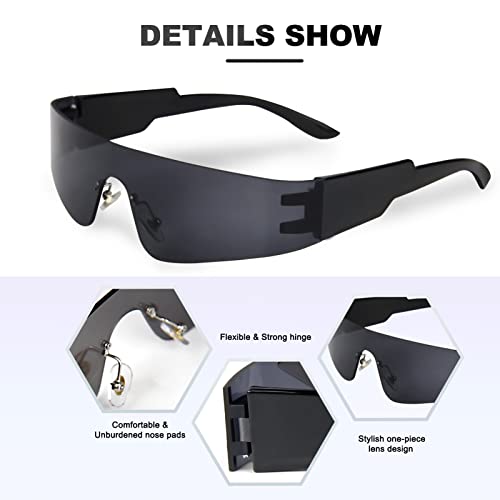 Futuristic Wrap Around Sunglasses Y2K Silver Trendy Rimless Glasses Cyberpunk Eyewear for Women Men Rave Party 6