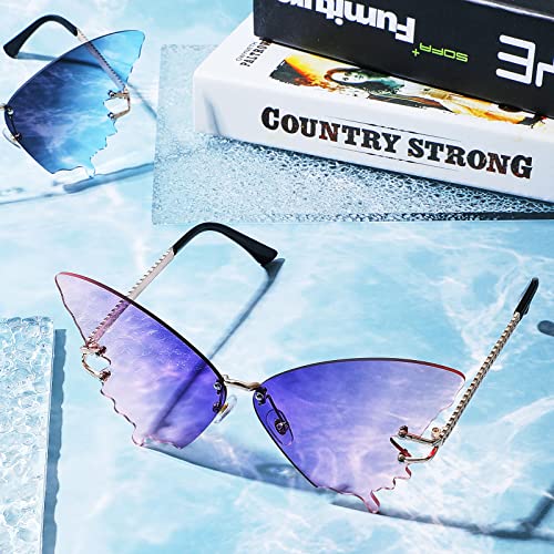 Weewooday 2 Pairs Butterfly Sunglasses Rimless Glasses Eyewear Butterfly Wing Sunglasses for Women Men 4