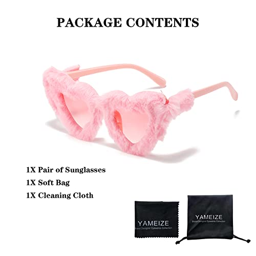 HOT ! YAMEIZE Women Plush Heart Shape Sunglasses Punk Velvet Fuzzy UV400 Protection Cat Eye Glasses for Women Men Cosplay Party