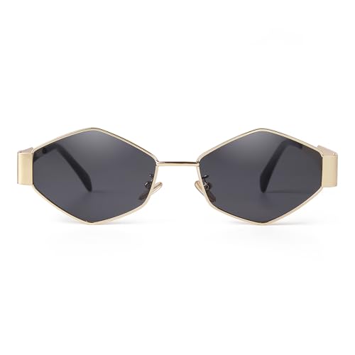 ADE WU Trendy Hexagon Sunglasses for Women Men Vintage Gold Geometric Metal Frame Shades 6