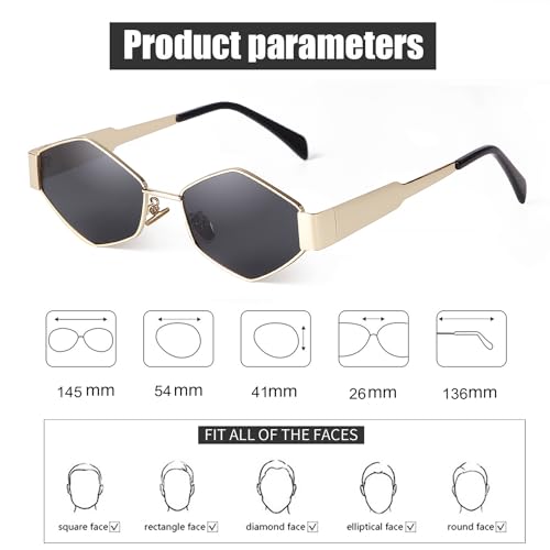 • Hexagon Sunglasses are a Classic Style that Never Goes out for Fashion, Those Unique Designer Sunglasses are Made of Metal Frame Gold Rimmed with Tinted Lense,Perefect for Adding a Vintage Feeling to Your Ouftit