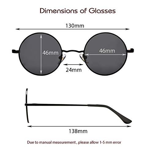 2 Pack Trendy Small Round Polarized Sunglasses for Women Men, Retro Hippie Style Shades Glasses 6