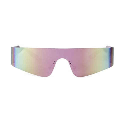 • MODERN TRENDY BRAND DESIGN - Personality rimless futuristic wraparound sunglasses; personalize your style from a variety of lens color treatments including silver mirrored, blue mirrored and pink mirrored lenes. Created exciting and unique looks, give these fashion rimless future sunglasses ultimate comfort alongside pristine fashion that will make your style ageless