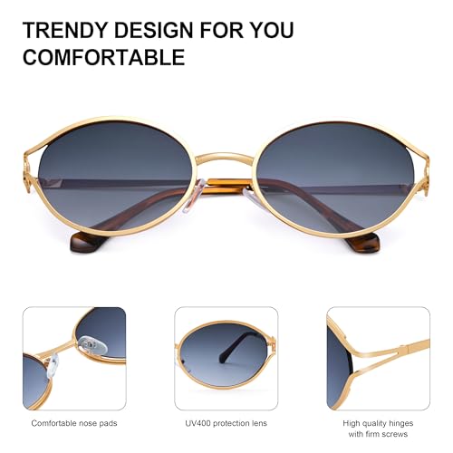 Bouryo Retro Oval Sunglasses for Women Men - Classic Trendy Small Round Sun Glasses Gold Metal Fashion Shades 2