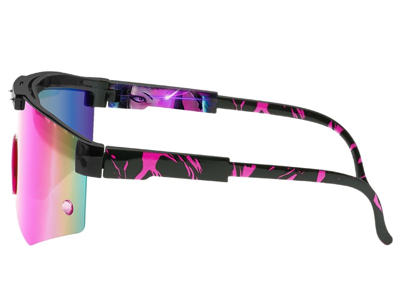 • DESIGN FEATURES: Magenta mirrored prism lenses with Juri's signature spikes across the upper brow, showcasing classic Street Fighter battle poses.