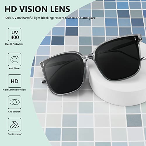 • FEISEDY TRENDY STYLE - Simple square frame giving you the appearance of classic and fashion, also adding a lifting effect to your face. Fashion metal rivet design makes you more dazzling in the crowd. Oversized Square Frame Design in minimalist style with embeded lenses, eye-catching, perfect fashion accessory to go with your outfits, a must-have sunglasses.