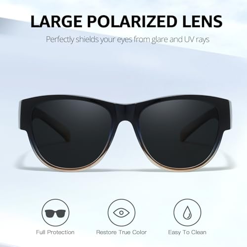 • FIT OVER GLASSES SUNGLASSES - Distinctive Design: Boasting an oversized wrap-around frame and a broadened temple design, these sunglasses are ample enough to seamlessly accommodate your standard prescription eyewear. Stylish and retro in their large square shape, they can also be worn standalone as fashionable accessories.