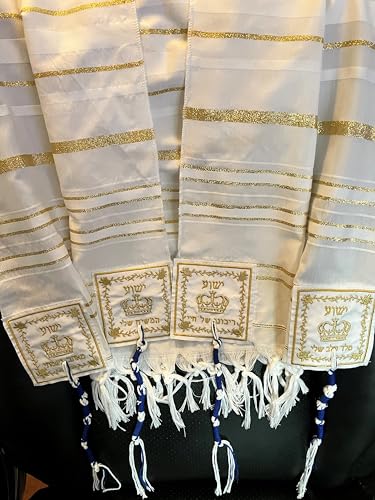HOT ! XTRA LARGE White Gold Messianic Tallit Talit Prayer Shawl 72" x 33" & Yeshua Tallit Zipper bag - Designed by Dr. Rick & Joyce Kurnow