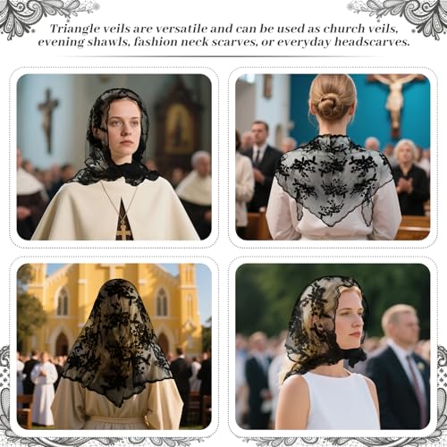 DOCILA Triangle Veil Fashion Print Church Wedding Mass Mantilla Veils Religious Christian Prayer Head Covering Scarf 4