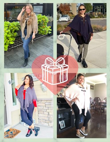 • 【Chic Toggle Design】Elegant shawl wraps for women with classic toggle buttons and stylish fringe hem, offering a sophisticated touch for fall and winter. Ideal as ponchos for women and core piece for any trending fashion wardrobe