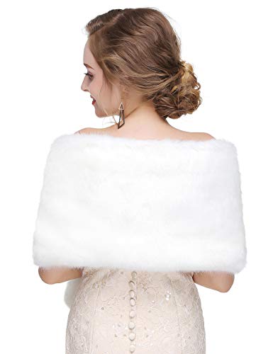 HOT ! Teyglen Bridal Faux Fur Wrap Wedding Winter Fur Wrap Shawls with Brooch Long Fur Stole Collar Scarf for Women Evening Party