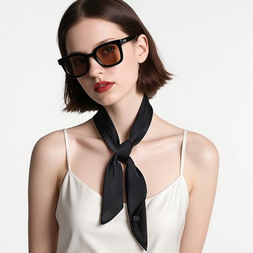 HOT ! Black Head Scarf for Women - 27.5x27.5inch Square Solid Silk Headband Satin Hair Black Silk Scarf Satin Bandana