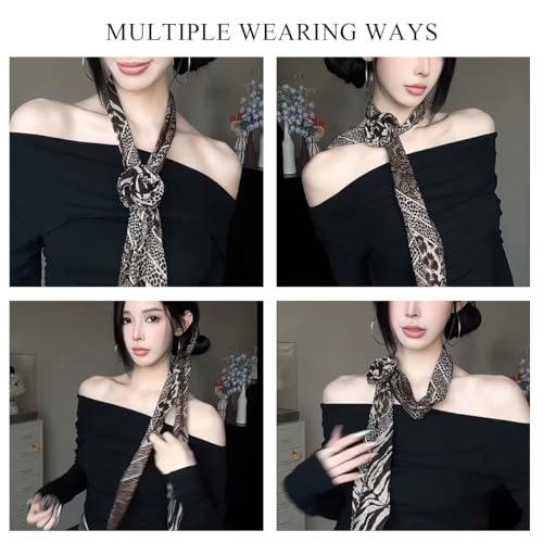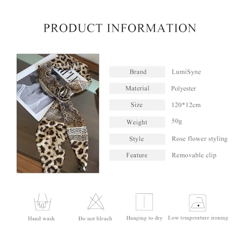 • EXQUISITE DESIGN: Narrow long scarf with rose flower styling, exquisite and aesthetic. Rose shape is stereoscopic and layered, showing a romantic flavor. Popular print elements, the perfect combination of elegance and fashion, classic and timeless. Polka dot print, simple and advanced, exuding a retro and modern charm. Leopard pattern, conveying wild beauty and spontaneous personality. The blossoming flower styling complements the trendy prints, interpreting the avant-garde and spicy y2k style.