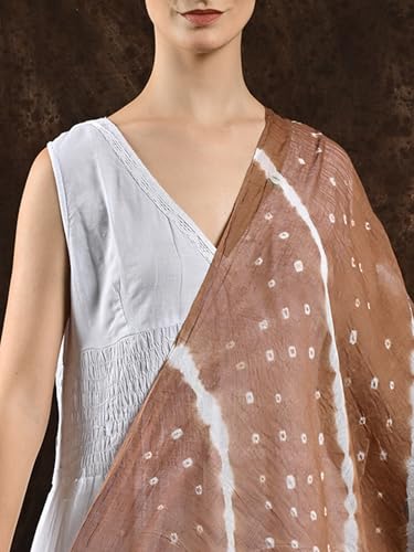 Pure Cotton Bandhani Leheria Tie-Dye Dupatta/Chunni For Women's and Girls from Gujarat Carob Brown For Summer 5