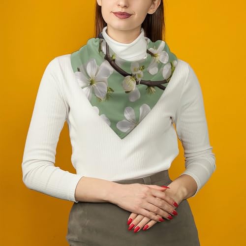 HOT ! Women Square Head Scarf Boho Hair Scarf Dogwood Blossoms Head Kerchief Woman Headband Satin Bandanas Fashion Neck Scarves Silk Headwear for Bag Hair Scarves Gift 25"×25"