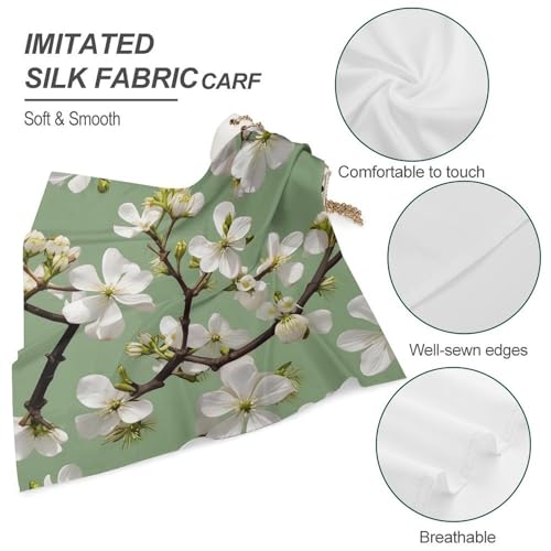 Women Square Head Scarf Boho Hair Scarf Dogwood Blossoms Head Kerchief Woman Headband Satin Bandanas Fashion Neck Scarves Silk Headwear for Bag Hair Scarves Gift 25"×25" 5