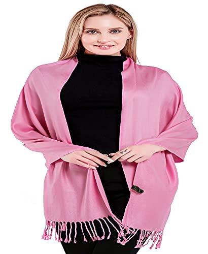 CJ Apparel Pastel Pink Solid Color Tassels Design Nepalese Shawl Seconds Scarf Wrap Stole Throw Head Wrap Pashmina Hand Made in Nepal New 2