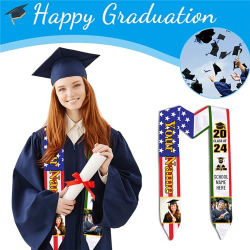 HOT ! Custom Graduation Stole Personalized Graduation Sash with with Photo School Name Class of 2024 Graduation Gifts