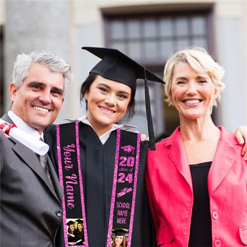 • Class of 2024 Graduation Sash : Personalized Graduation Picture Sash can be customized with your name, school name, year of graduation, and two pictures of the graduation ceremony or your favorite photo. Ideal gift for a friend's son or daughter or anyone graduating in 2024.