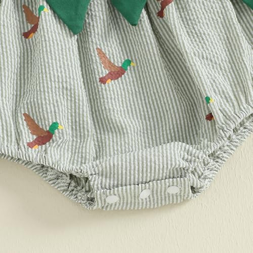 Newborn Baby Girls Duck Fall Clothes Striped Duck Embroidery Ruffled Long Sleeve Bubble Romper with Headband Set 6