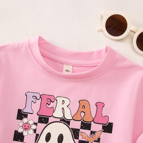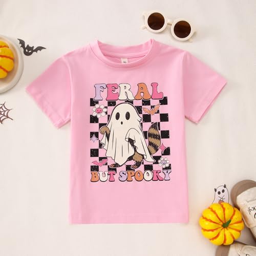 CM C&M WODRO Toddler Girl Halloween T-Shirt Feral But Spooky Shirt Short Sleeve Funny Kids Raccoon Ghost Graphic Tee Tops 4
