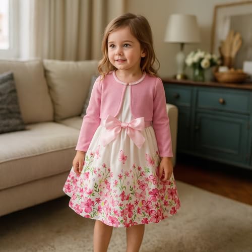 • CUTE STYLE:Dress your little girl in charm and comfort with this toddler dress and cardigan set. Featuring a floral print dress and lace-trimmed toddler girl cardigan, this set is perfect for mixing and matching with her favorite spring, summer, or fall outfits.