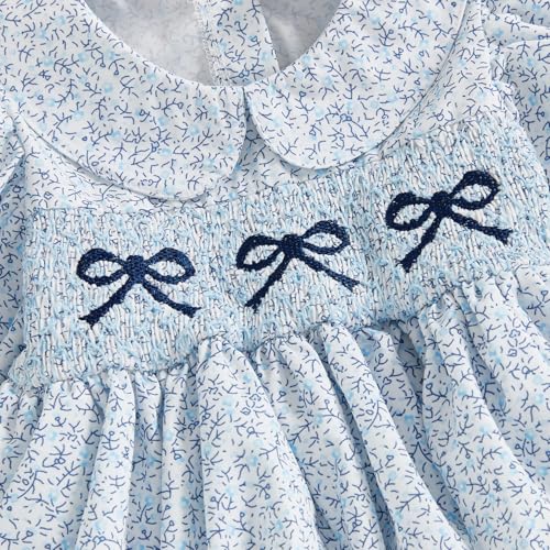 Newborn Baby Girl Outfit Bow Embroidery Floral Smocked Romper Dress Long Sleeve Bodysuit Jumpsuit Infant Fall Clothes 6