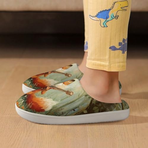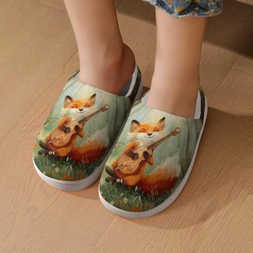 Musical Fox in Forests Cute Cotton Slippers Anti-Slip House Shoes Printed Slipper for Indoor Outdoor 6