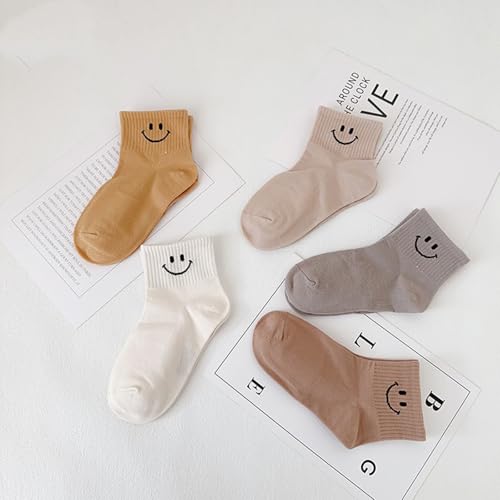 Baby Toddler Mesh Socks with Smiley Faces, Boys Girls White Breathable Summer Kids Ankle Socks,5 Pack 4