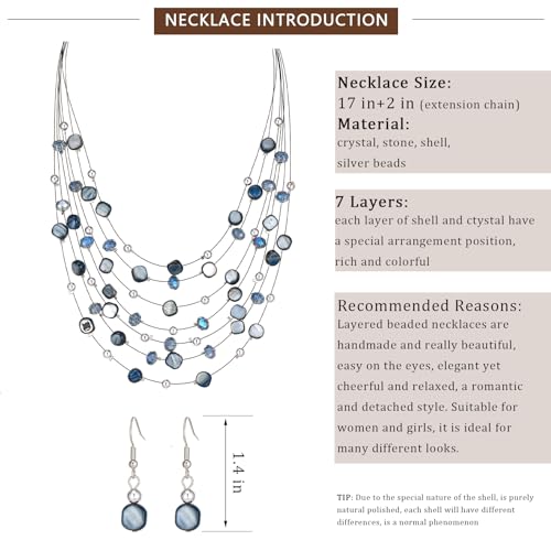 Multi-Layer Boho Shell Beaded Necklace for Women Colorful Crystal Strand with Silver Beads Statement Collars Necklace and Earrings Costumes Jewelry Sets for Women 1