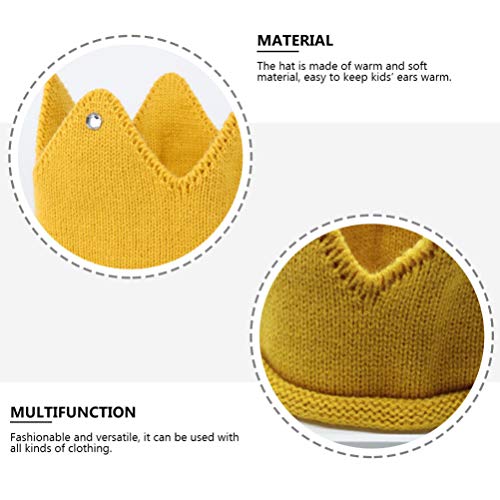 Kisangel Baby Boy Girl Crown Knitted Woolen Hat Baby Birthday Tiara Winter Beanie Cap Baby Shower Crown Photo Prop (Yellow) 4