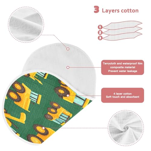 Yellow Truck Burp Cloths Cotton Baby Washcloths,Large 22x11in Burping Cloth Absorbent and Soft for Newborn Baby Boys and Girls,2 Pack 3