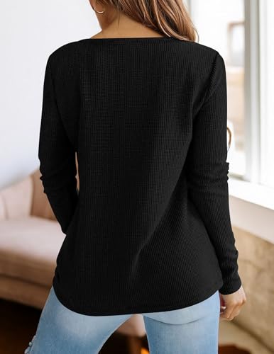 More information about PRETTYGARDEN Long Sleeve Shirts for Women 2025 Fall V Neck Waffle Basic Tee Dressy Casual Winter Blouses Knit Tunic Tops