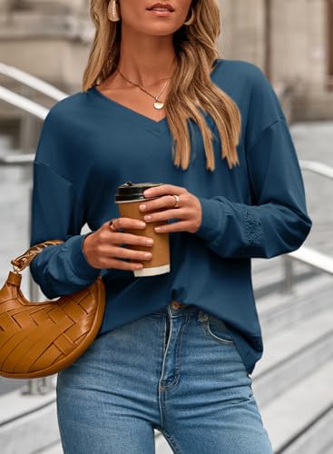 HOT ! Dokotoo Womens Tops Dressy Casual 2025 Long Sleeve Pullover V Neck Fall Shirts Hollow Out Lace Embroidered Blouse