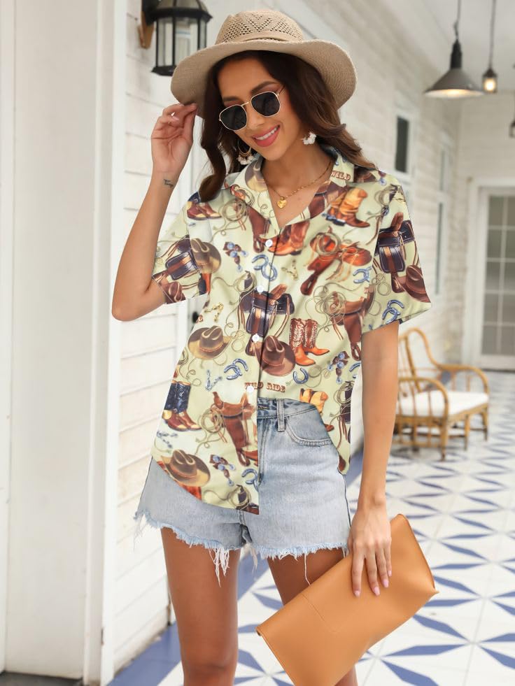 HOT ! Western Shirt for Women Cowgirl Shirts Boho Graphic Button Down Country Concert Outfits Retro Cowboy Clothes Tops