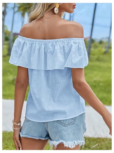 SweatyRocks Women's Off The Shoulder Blouse Short Sleeve Ruffled Summer Tops 3