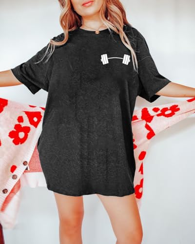• Design: Casual gym exercise tshirt, oversized style, crew neck, short sleeve, with the cute dumbbell patterns on the front and back.