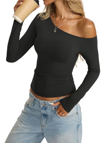 More information about Womens Off Shoulder Tops Tight Long Sleeve Shirts Sexy Crop Top Y2K Slim Fit Going Out Fall Fashion Clothes 2025