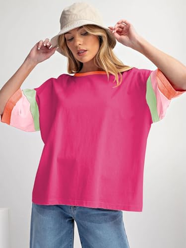 miduo Womens Casual Loose Fit Color Block Stitching Short Sleeve Crew Neck Top T Shirts 7