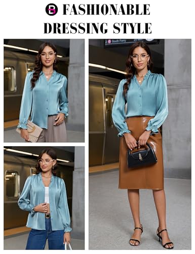 • Luxury Silky Fabric: Women blouses are made of 95% polyester and 5% spandex material, smooth shiny satin, lightweight, comfortable and skin-friendly, button down shirts for women suitable for fall, spring, winter, silk blouse for women is fashion piece for office lady.