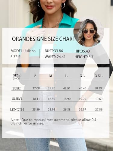 HOT ! ORANDESIGNE Women's Button Down Shirts 3/4 Length Sleeve Polo Collared Tops Business Casual Color Block Summer Tees