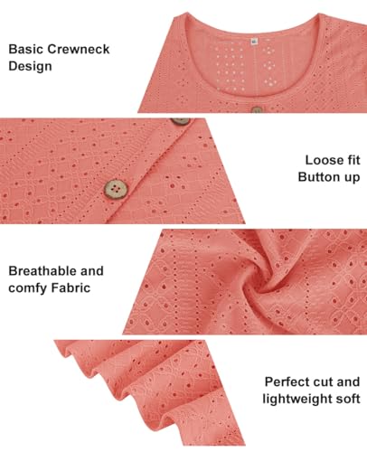 RITERA Plus Size Tops for Women Crewneck Neck with Button Up Short Sleeve Embroidery Henley Tshirt Casual Basic Shirt XL-5XL 3