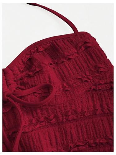 • Features: halter neck top for women, lace trim, sleeveless and backless, ruched drawstring front, flare hem, flowy top, babydoll top tank