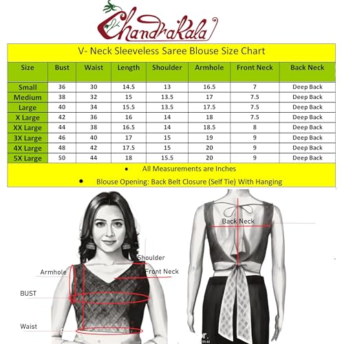 Chandrakala Sleeveless Blouses for Women Sarees,V Neck Backless Readymade Crop top Choli(B218-P) 5